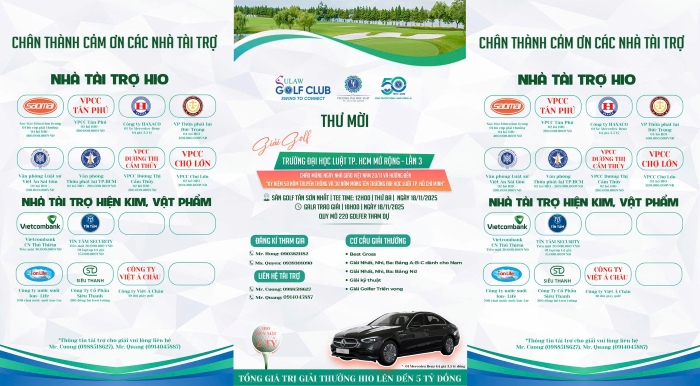 Hồ sơ mời tài trợ giải Golf ULAW mở rộng lần 3 năm 2025- Chào mừng Ngày Nhà giáo Việt Nam 20/11 & Hướng đến kỷ niệm 50 năm truyền thống Trường Đại học Luật TP. Hồ Chí Minh